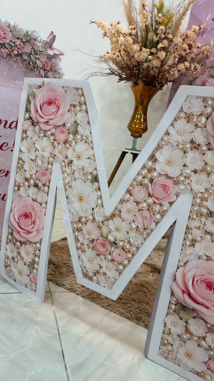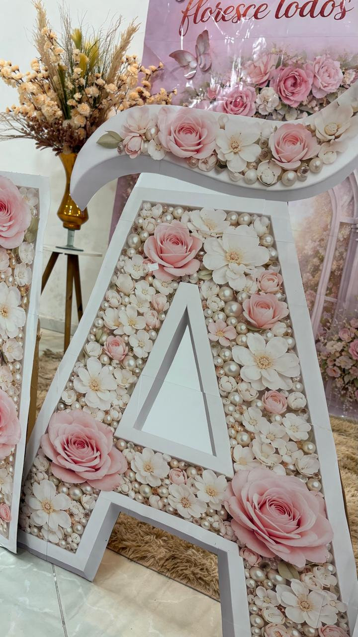 ✅LETRAS EM EFEITO 3D COM PÉROLAS E ROSAS.