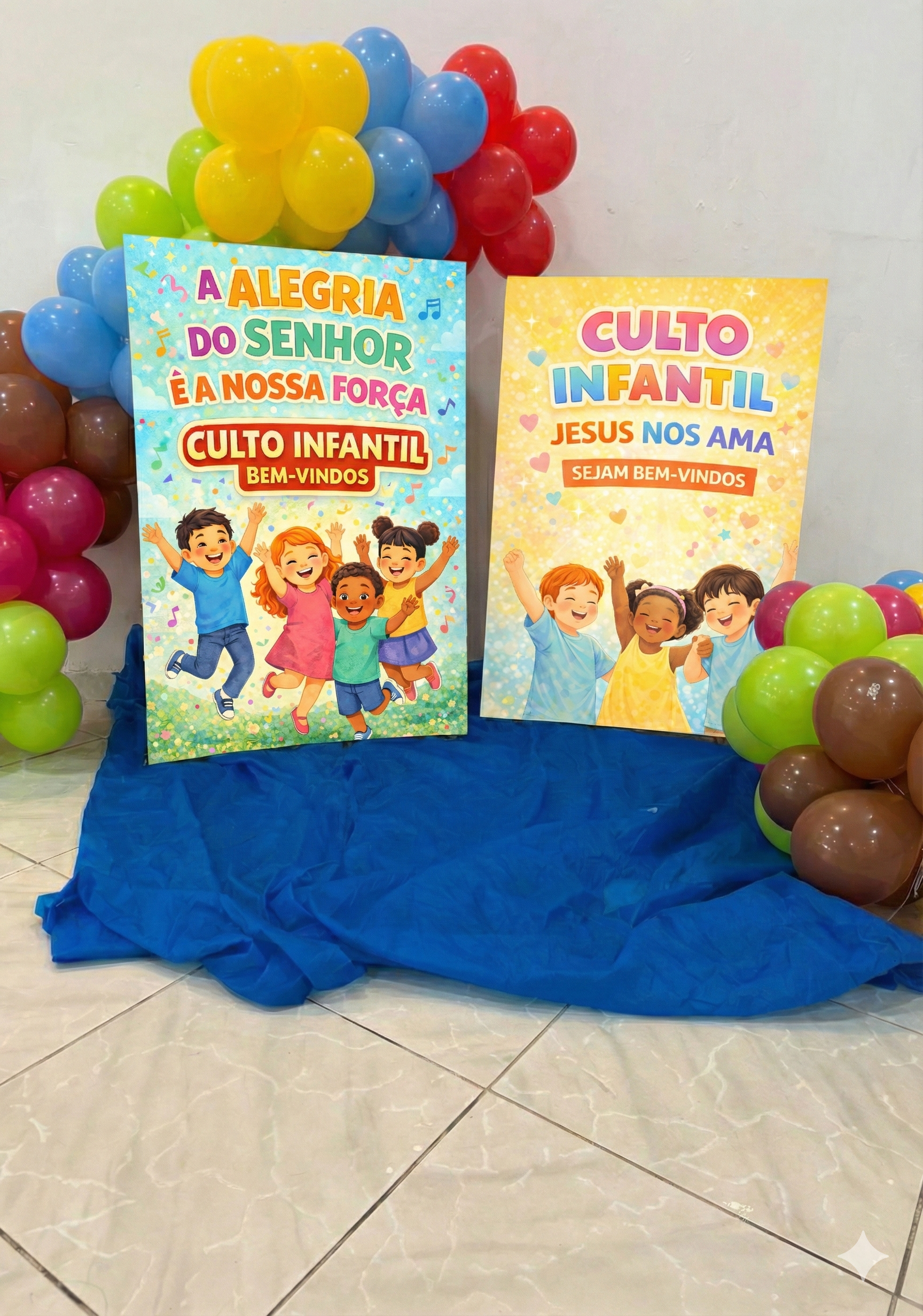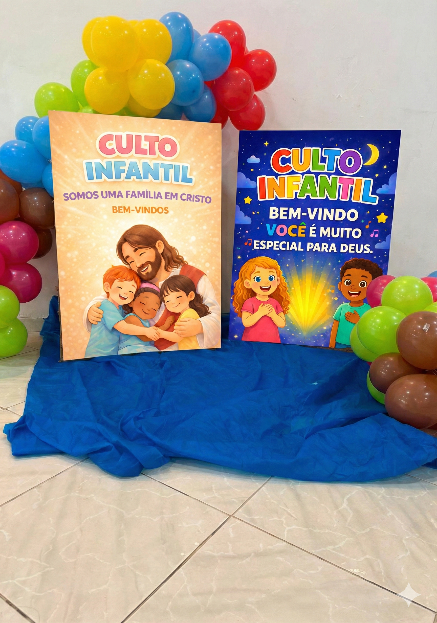 KIT 12 PAINÉIS DIFERENTES PARA RECEPÇÃO DE CULTO INFANTIL.