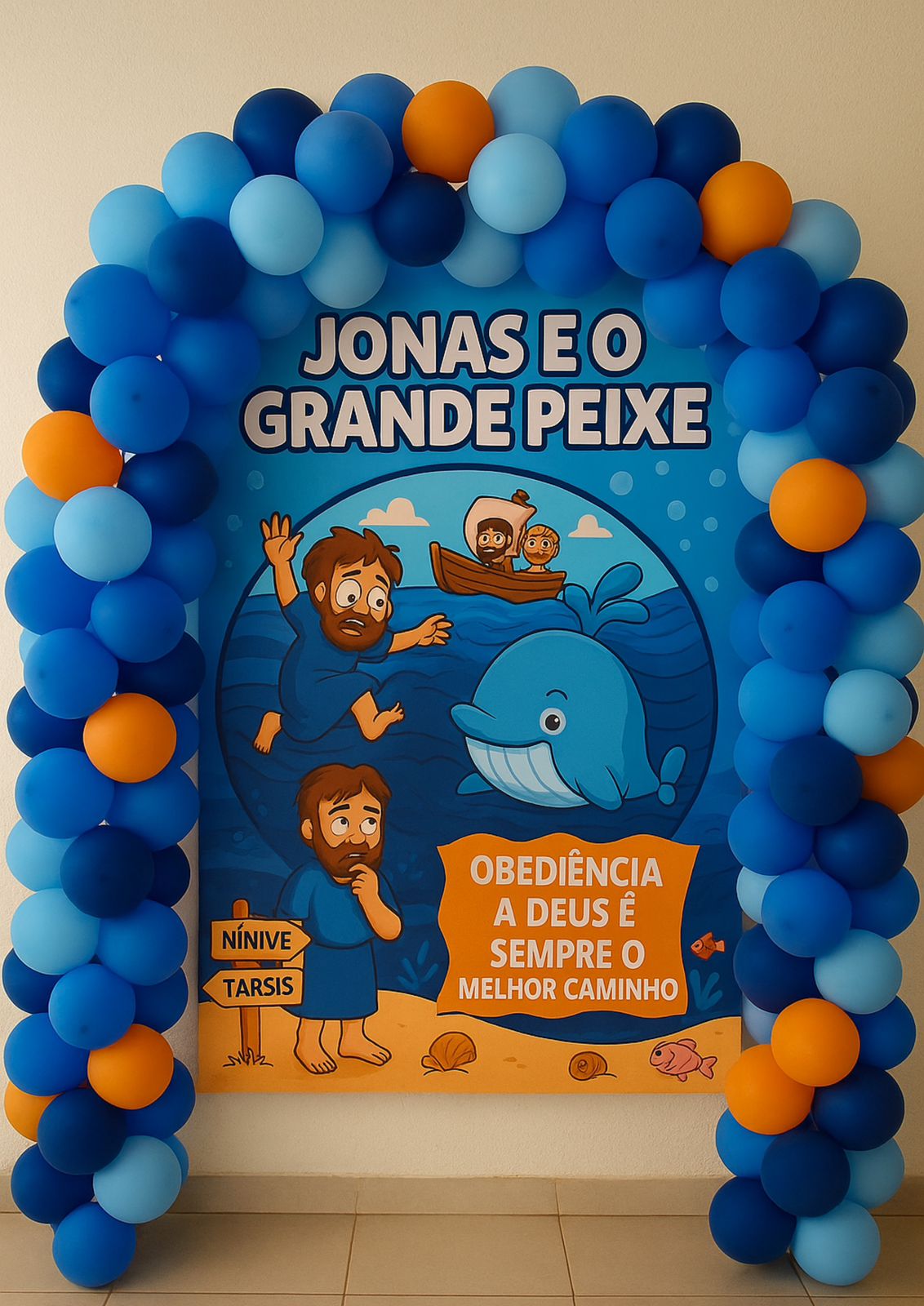 ✅ PAINEL COM O TEMA JONAS E O GRANDE PEIXE: OBEDIÊNCIA A DEUS É SEMPRE O MELHOR CAMINHO. COM 1,65 cm DE ALTURA.